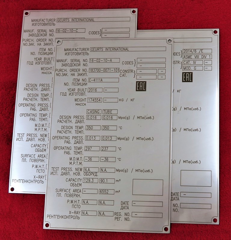 - Edelstahlplatte, z.B. Etiketten für Flugzeuge